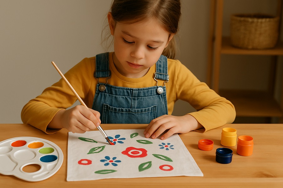 Use fabric markers or stamps on plain cotton squares. Kids can design their own furoshiki and use them again and again.
