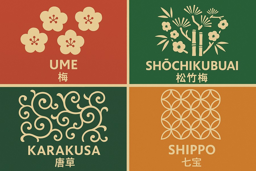 | Pine, Bamboo, Plum | 松竹梅 (Shochikubai) | The “Three Friends of Winter,” symbols of celebration and perseverance |